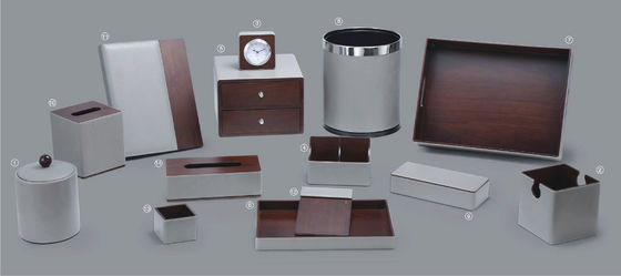 होटल प्रीमियम चमड़ा और लकड़ी श्रृंखला, टिशू बॉक्स, नोट पैड, कचरा बिन, चाय-पत्ती बॉक्स, टीवी नियंत्रक धारक